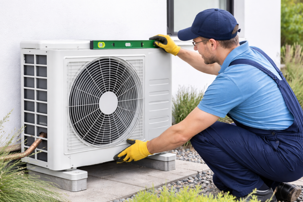 Professional installation ensures the outdoor unit has sufficient clearance on all sides for proper airflow and ventilation. Installers also consider positioning in shaded or well-ventilated areas where possible.
